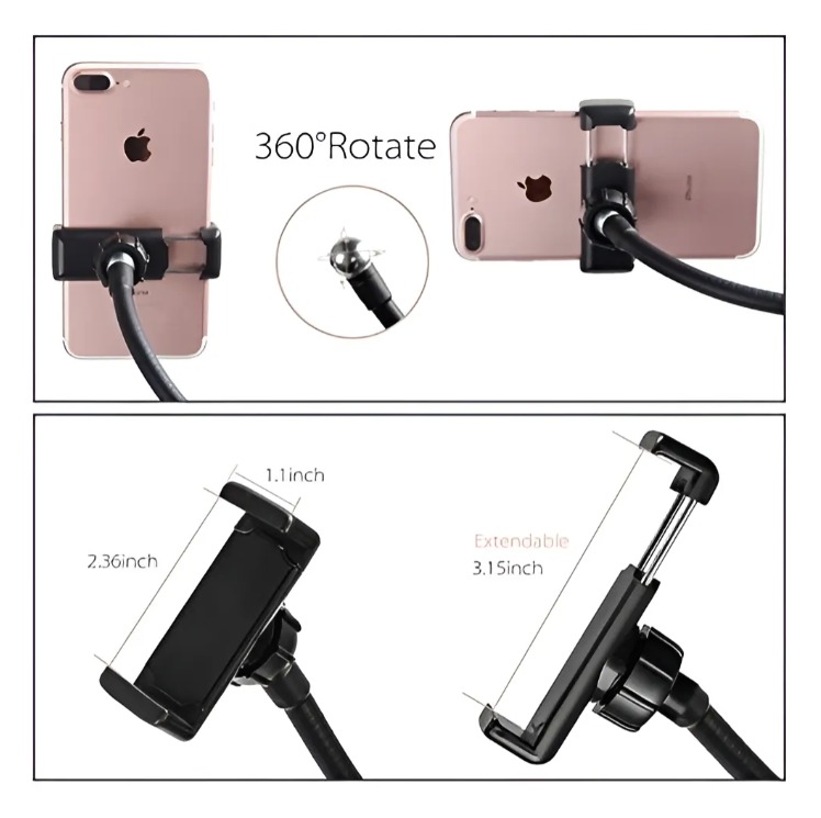 Mano libre-Pinza en mesa/escritorio/cama y rotar cualquier ángulo a manos libres