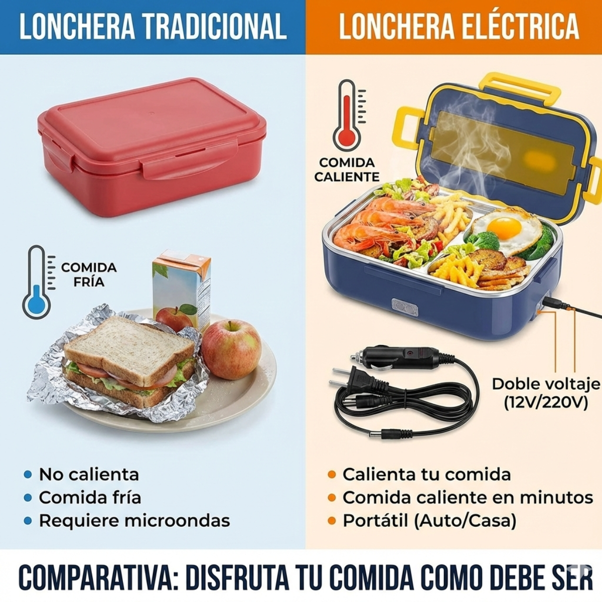 La Lonchera Eléctrica Portátil Calentador De Alimentos es la solución ideal para quienes buscan disfrutar de comidas calientes en cualquier lugar. Con una capacidad de 1,5 litros, permite llevar una porción generosa de tus platillos favoritos, asegurando que siempre estén listos para ser degustados. Su diseño compacto, con dimensiones de 18 cm de altura, 11 cm de ancho y 25 cm de largo, facilita su transporte, ya sea en la oficina, en la escuela o durante viajes. Fabricada en plástico y acero inoxidable, combina durabilidad y estilo, adaptándose a tus necesidades diarias. Con una potencia de 40 W, esta lonchera se calienta rápidamente, permitiéndote disfrutar de tus alimentos en poco tiempo. Incluye un cargador para autos, lo que la convierte en una opción práctica para quienes pasan mucho tiempo en la carretera. Además, viene con accesorios útiles como cuchara y tenedor, así como cables para corriente y auto, asegurando que tengas todo lo necesario para una experiencia completa. Esta lonchera eléctrica es perfecta para quienes valoran la comodidad y la calidad en sus comidas.