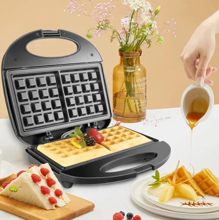 Placas de teflón Posee placas de cocción de teflón. La gran ventaja: es muy fácil de limpiar. Además, resiste a las altas temperaturas y no requiere ningún tipo de grasa o aceite al momento de cocinar los waffles. Cómoda y práctica Ideal para el día a día, ya que al ser antiadherente tus waffles no se pegan.