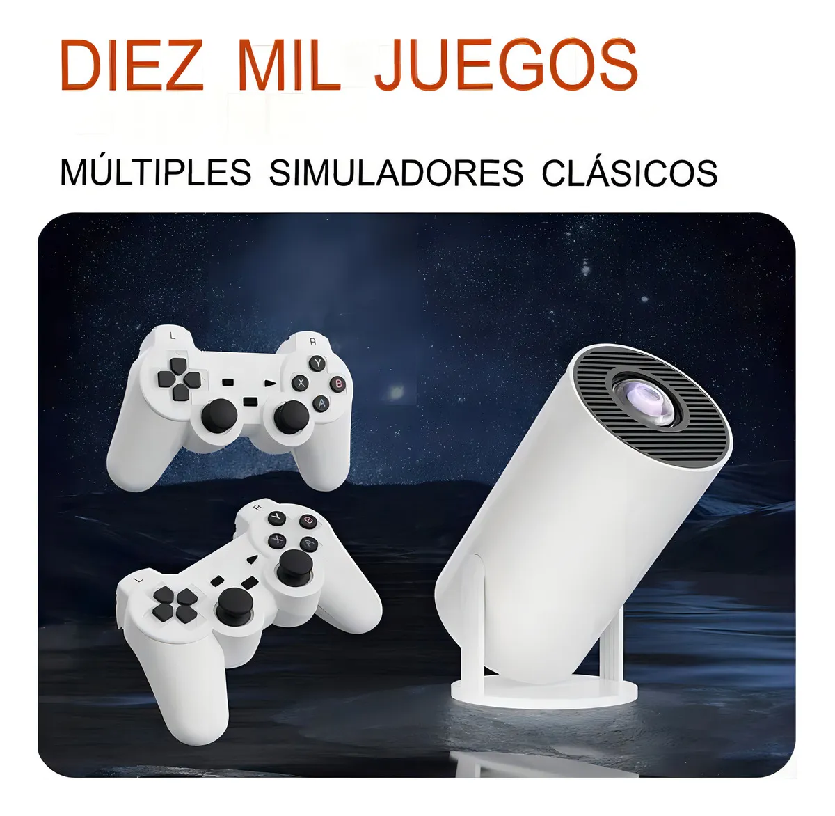 Este proyector Smart 2 en 1 Gamer es un dispositivo mini, ideal para cualquier espacio, que incluye conectividad Bluetooth y Wi-Fi, así como un control remoto para mayor comodidad. Con un consumo energético de solo 5 W, es eficiente y amigable con el medio ambiente. Además, cuenta con un parlante integrado que complementa la experiencia audiovisual.