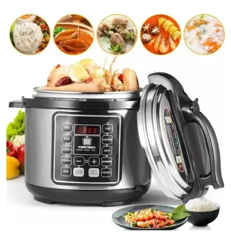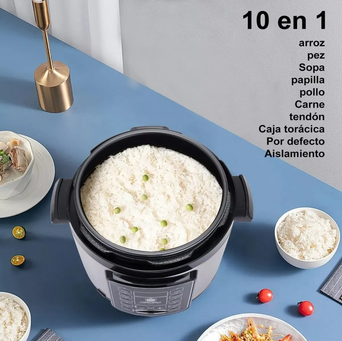 FUNCIONALIDAD: Cocina a presión, cocción lenta, olla arrocera, máquina para hacer yogur, vaporera, sartén para saltear y calentador de alimentos.