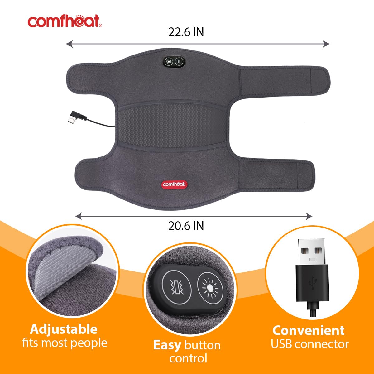 Las correas de velcro ajustables mantienen la almohadilla térmica de masaje de rodilla firmemente en su lugar, adaptándose a una circunferencia máxima del muslo de hasta 48 cm (18.8 pulgadas) y una circunferencia máxima de la pantorrilla de hasta 44.7 cm (17.6 pulgadas). Es adecuada para la mayoría de las personas, tanto hombres como mujeres.