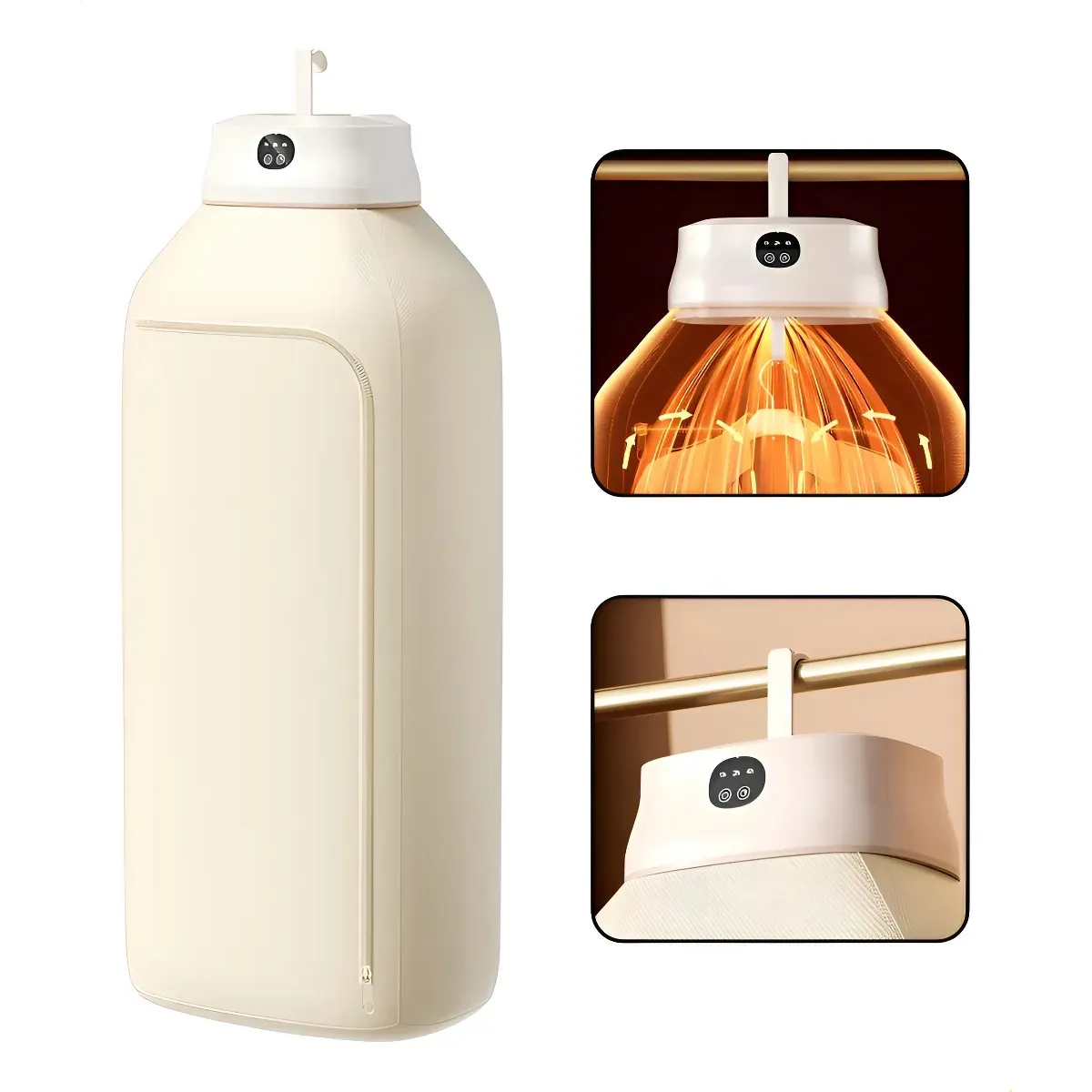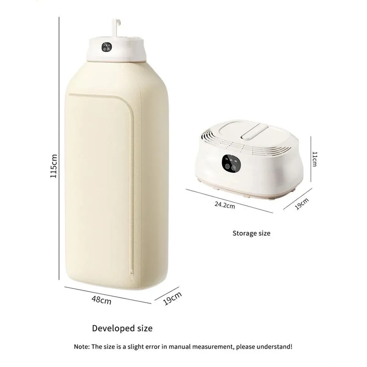 Diseño fácil de usar: la secadora pequeña viene con una correa de mano y un gancho en forma de S, una pantalla táctil inteligente, una cubierta a prueba de humedad y polvo y una barra colgante en forma de onda. Fácil de usar, se puede colgar en armarios y tiendas de campaña, ahorrando espacio.