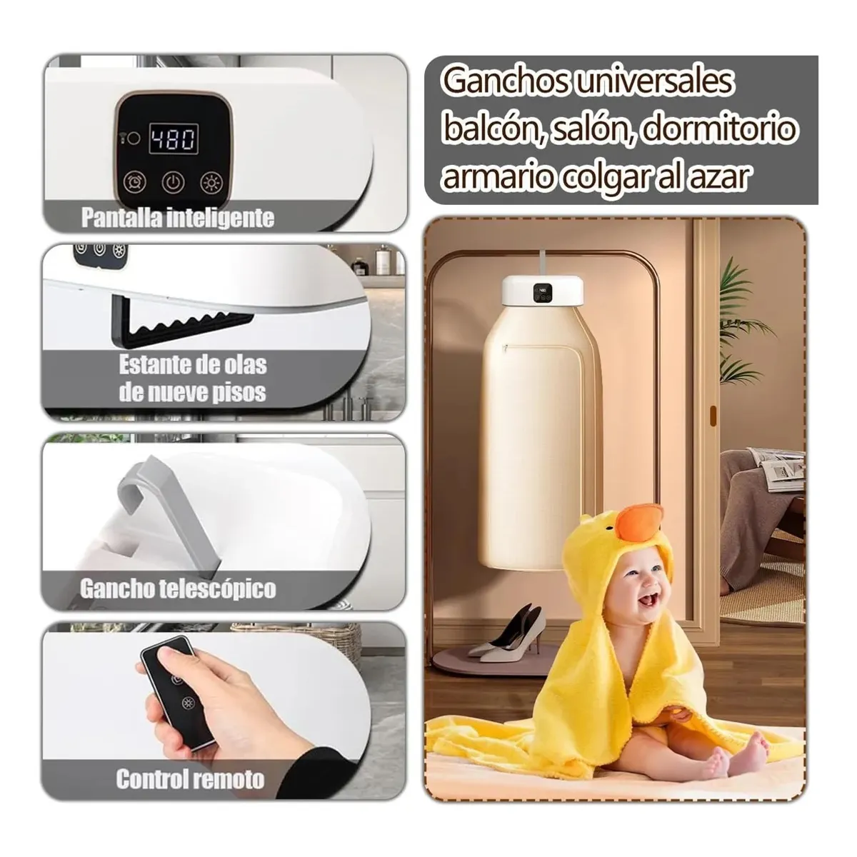 Función de esterilización y desinfección: mini secadora de ropa con desinfección UV, limpia profundamente la ropa y la mantiene seca e higiénica, cuida mejor tu salud y la de tu bebé.