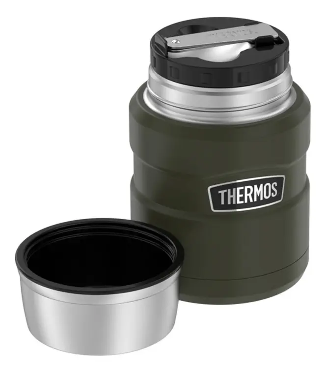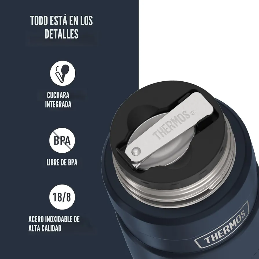 🥄 Todo en Uno: Olvídate de llevar cubiertos extras. Incluye una cuchara plegable de acero inoxidable que se guarda mágicamente en la tapa, y su tapa aislada funciona como un práctico tazón para servir.